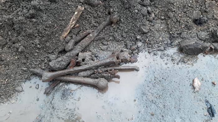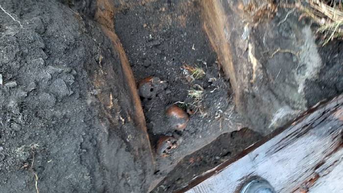 Человеческие останки нашли во время рыться траншеи для проведения канализационной трубы. Во время земляных работ тракторист обнаружил под слоем земли и песка скелеты, а также фрагменты сапог и ботинок.