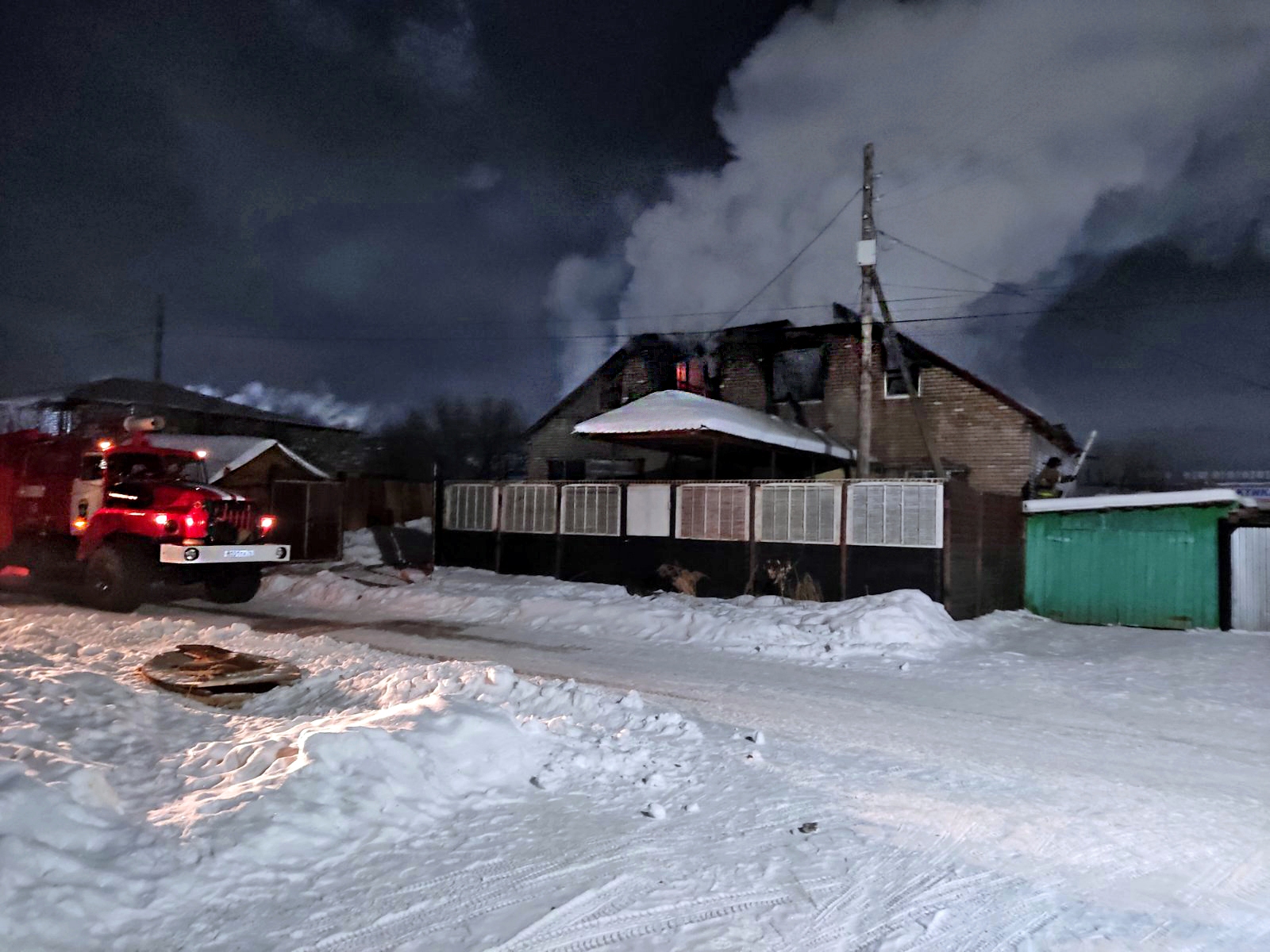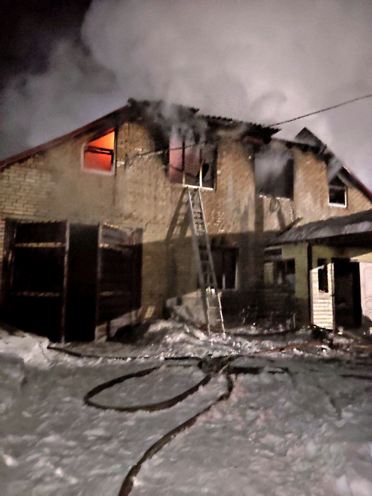 Сообщается, что сегодня ночью, 8 февраля, произошло возгорание в двухэтажном кирпичном доме по улице Комсомольская. На момент прибытия первых подразделений противопожарной службы уже полыхали пристрой, второй этаж и кровля дома. В опасной близости от горящего здания находились хозяйственные постройки, баня и другие строения. Существовала угроза перехода огня на соседние конструкции.