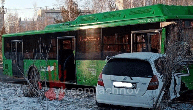 В Челябинске Honda выехала на встречную полосу и врезалась в автобус № 2 с пассажирами, передает корреспондент Агентства новостей «Доступ».
