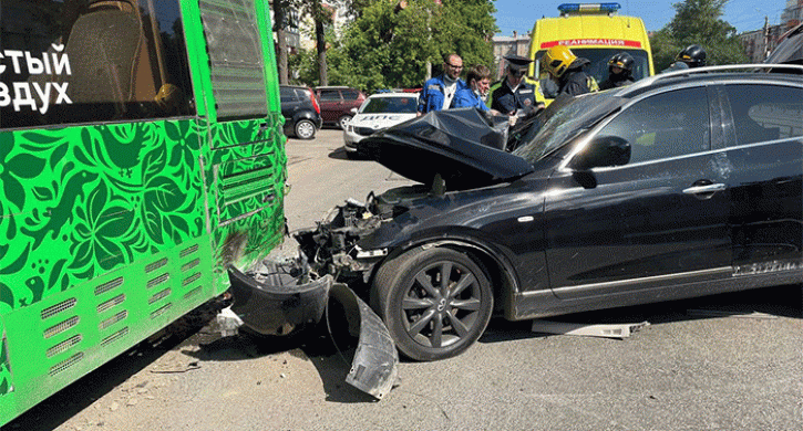 В Челябинске дорогая иномарка протаранила автобус, водитель пострадал