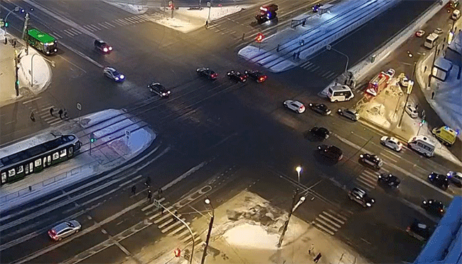 Сотрудники Госавтоинспекции устанавливают обстоятельства дорожно-транспортного происшествия около дома 394 по проспекту Победы.