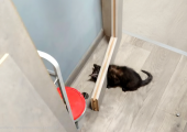 В Челябинске спасли застрявшего в отверстии двери кота