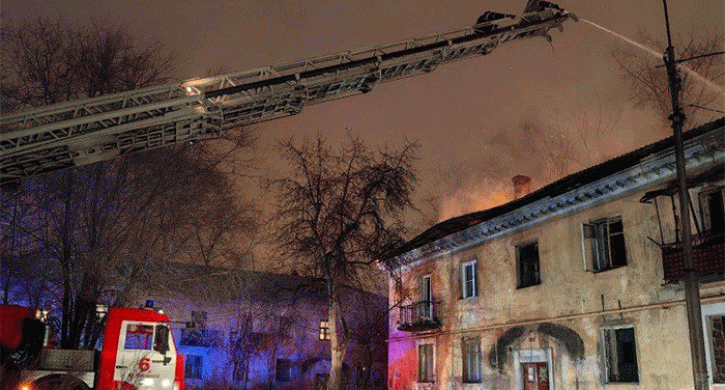 В Ленинском районе Челябинска произошел пожар в расселенном 2-этажном доме