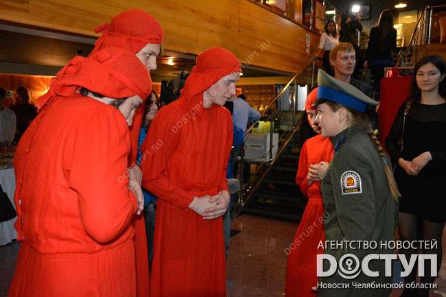 На открытии мероприятия зрителей ждала развлекательная программа – фуршет, конкурсы и мужчины в хиджабах под контролем дам-надсмотрщиц в военной форме.