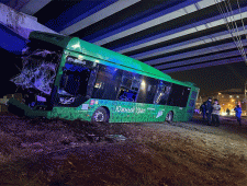 В Челябинске автобус с пассажирами врезался в опору железнодорожного моста