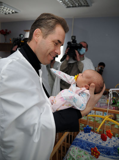 Павел Астахов осматривает здесь все помещения: санитарные комнаты, игровые, детские спаленки, кабинеты педагогов. Здешний дом ребенка можно принять за ясли, причем комфортабельные. О малышах воспитательницы говорят с лаской, те тянутся к ним на ручки, улыбаются.