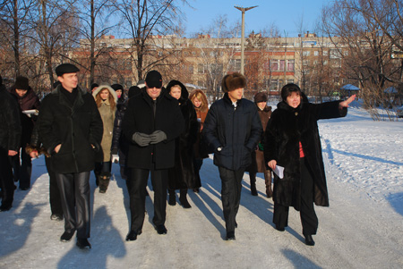 После гимназии Сергей Давыдов направился в знакомые до боли челябинским журналистам дворы домов № 23 и 25 по улице Ворошилова, ежегодно посещаемые всеми первыми лицами города и области на предмет ознакомления с благоустройством. Ездят ли чиновники наблюдать уже имеющееся благолепие, или оно подпитывается именно их приездами, не суть важно, но образцово-показательные детплощадки и автостоянки под началом ПЖРО Курчатовского района и лично его руководителя Анатолия Давыденко сити-менеджер миновал без замечаний.