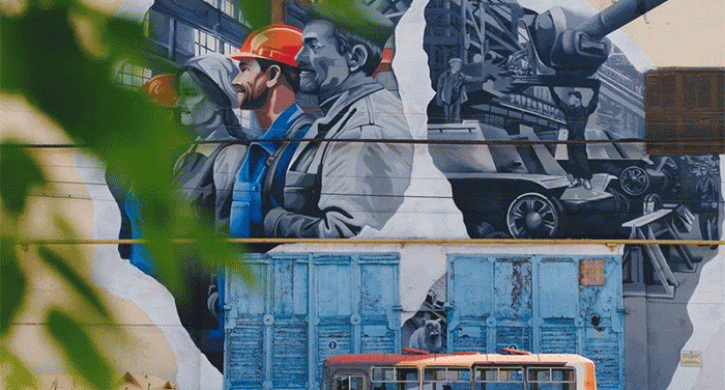 На Челябинском тракторном заводе украсили стены цехов яркими граффити, передает корреспондент Агентства новостей «Доступ».