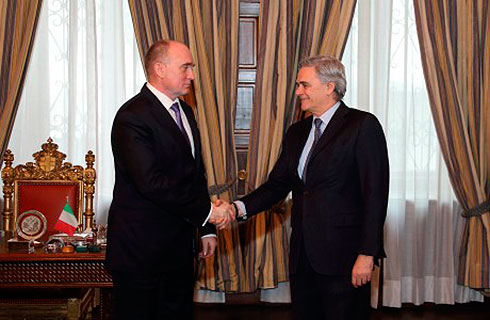 Борис Дубровский призвал итальянские предприятия локализовывать выпуск своей продукции на Южном Урале − сегодня, 18 марта, в Москве состоялась рабочая встреча губернатора Челябинской области с послом Италии в России Чезаре Мария Рагальини, где глава Южного Урала выразил надежду на широкое участие итальянских бизнесменов во Втором Итало-Российском форуме, который пройдет в сентябре 2016 года в Челябинске, передает корреспондент Агентства новостей «Доступ» со ссылкой на пресс-службу правительства региона.