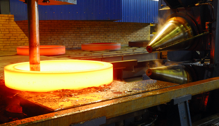 Производство раскатных колец проходит в несколько этапов. Заготовку будущей детали отковывают, а после помещают на кольцераскатной стан. На агрегате ей придают форму кольца необходимых параметров. Далее раскатное кольцо нагревают и дают остыть, чтобы добавить металлу прочности.