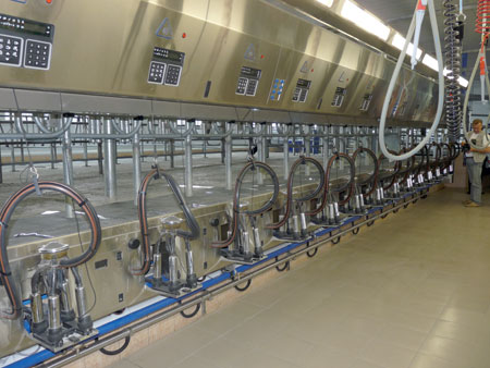 По словам председателя СПК «Подовинное» Сергея Мельникова, будущий доильный зал фермы рассчитан на одновременную дойку 600 коров, обслуживающий персонал составляет всего четыре человека.