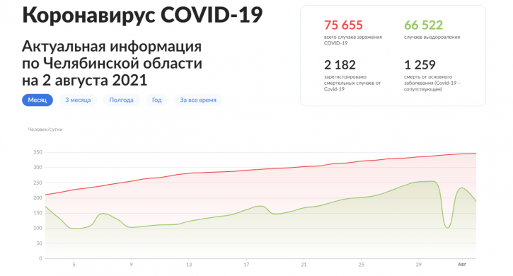 По данным Минздрава региона, с начала пандемии было зарегистрировано 75 тыс. 655 случаев заражений. Сейчас лечение проходят 5 620 южноуральцев. За сутки из больниц выписали 188 пациентов. Всего 66 тыс. 522 жителя области переболели коронавирусом.