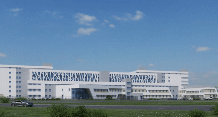 Комплекс общей площадью 53 тыс. кв. метра будет состоять из пяти корпусов, в числе которых два семиэтажных стационара на 500 мест.