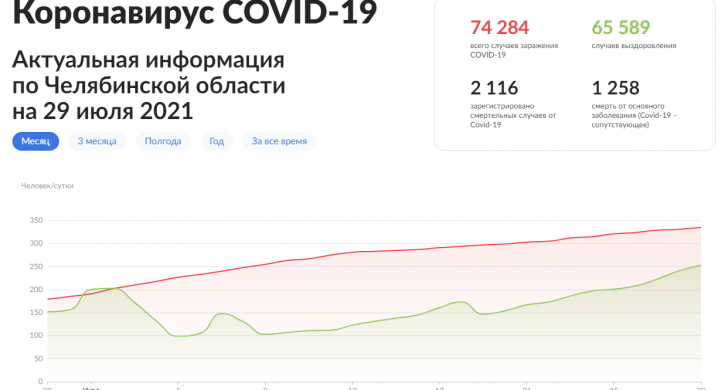 Также за сутки коронавирусом заразились 335 южноуральцев, всего – 74 тыс. 284. Сейчас лечение проходят 5 279 больных. Переболели опасной инфекцией 65 тыс. 589 жителей Челябинской области (за последний день выписали 253 пациентов).