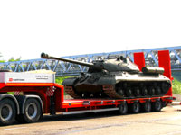 Тяжеловесный трал с танком на борту стал центральным экспонатом XVII международной выставки «Строительная техника и технологии».