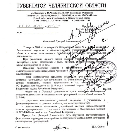 Есть контакт! Президент Медведев после разговора с губернатором Челябинской области Суминым дал поручения федеральным министрам: «Что происходит?» (КОПИИ РЕЗОЛЮЦИЙ)