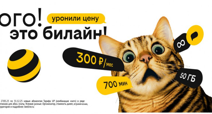 Предложение действует с 27.05.25 по 31.12.25 для новых абонентов Тарифа UP (комбинации «хит» и «хит+доп. номера»). Организатор, территория, ограничения и подробности на beeline.ru.