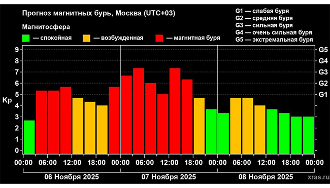 Cамая сильная геомагнитная буря в 2025 году произойдет 7 ноября