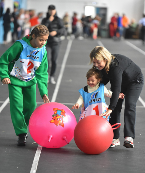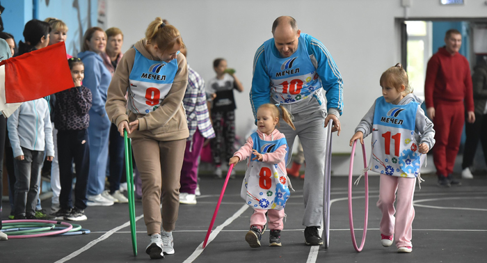 В спортивную программу вошли состязания по прыжкам на фитболах и скакалках, катанию обруча, сбору кубиков. Особенность конкурсов заключалась в том, что в них принимали участие все члены семьи, от взрослых до самых маленьких. Многие семьи участвуют в соревнованиях уже не в первый раз, а потому были готовы к нестандартным заданиям.