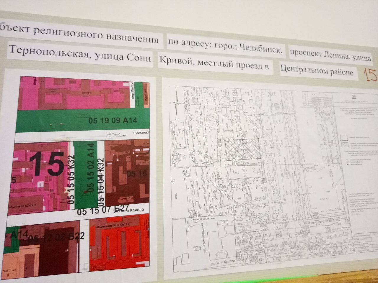 На мероприятие пришли более 150 человек: преподаватели и студенты ЮУрГУ, представители РПЦ, учителя воскресных школ, общественники («Гражданский патруль», «Архистраж»), чиновники. Сидячих мест хватило не всем: люди стояли в проходах, несколько десятков студентов ютились у дверей и трибуны. На доске маленький макет – даже не карта, а чертеж с множеством пометок, которые обычному человеку совершенно непонятны.