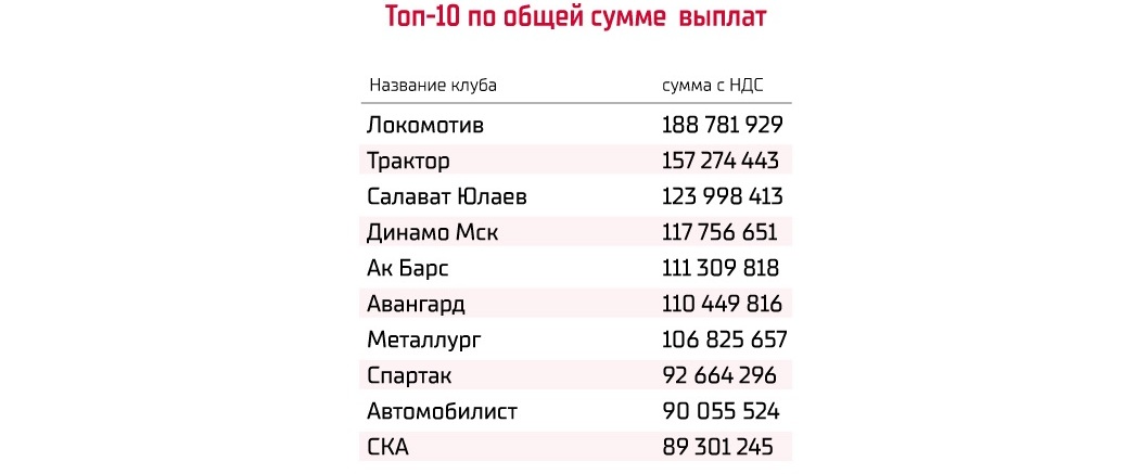 Наибольшую сумму по итогам сезона 2024/2025 получит «Локомотив» – 188 млн 781 тыс. 929 рублей с НДС.