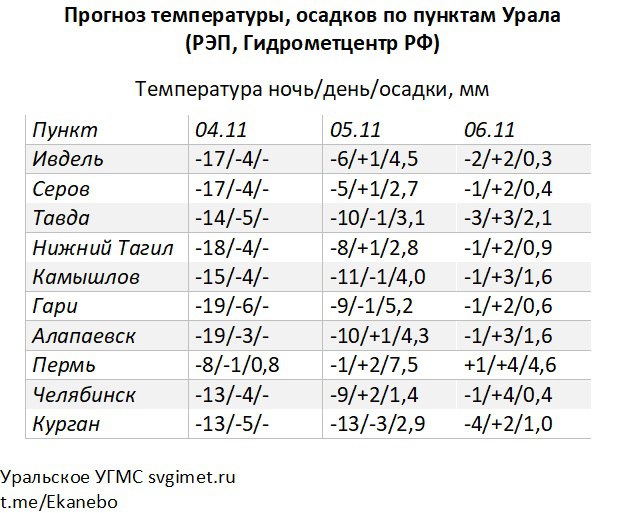 Непосредственно в Челябинске 4 ноября без осадков, ночью минус 11-13, днем минус 3-5.