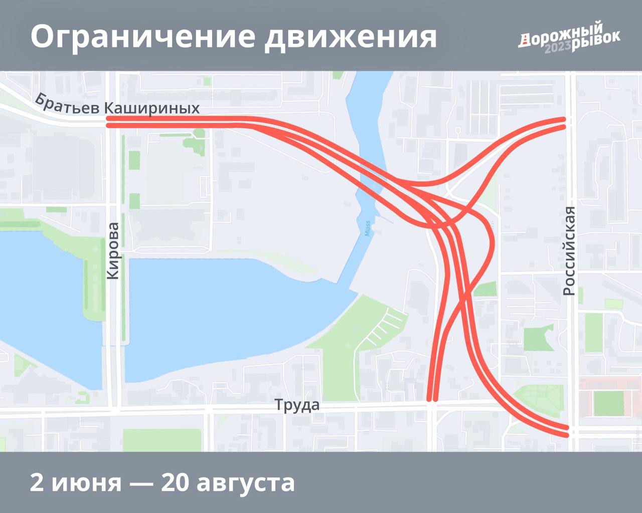 Кроме того, начинаются работы по замене дорожного покрытия на развязке по улице Братьев Кашириных – от Кирова до Российской с выходом на Труда. По окончании ремонта там также будет нанесена разметка.