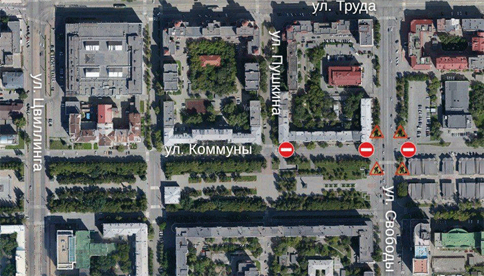Напомним, по этой причине до 5 июня закрыто движение транспорта по улице Коммуны в районе дома 91/2-Б, ограничен проезд по улице Свободы в районе перекрестка с улицей Коммуны по направлению к улице Труда.