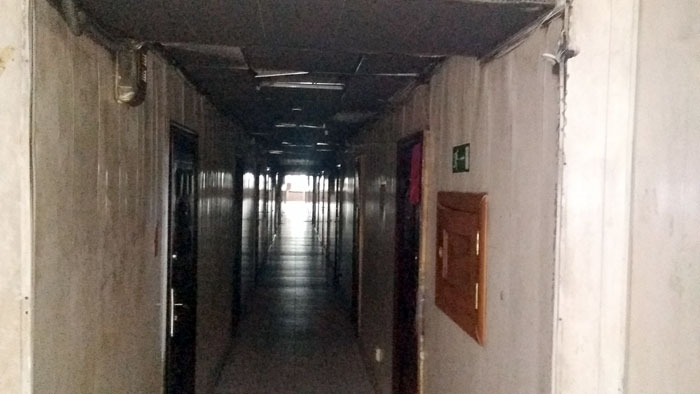 Кроме того, с 1 марта 2019 года из здания убрали вахтера, и теперь местные бомжи превратили первый этаж общежития в туалет, а наркоманы – в притон. На четвертом этаже общежития весной произошло несколько пожаров, однако собственник здания – администрация Златоуста – более чем за полгода не озаботился ремонтом, все это время этаж остается с закопченными стенами.