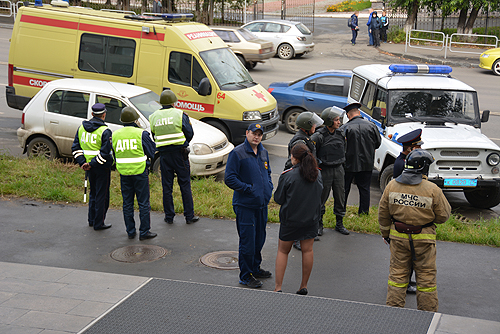 Взрывное устройство искать никто не пытался. Когда по многочисленным намекам охрана все же обнаружила пакет, то около 20 минут раздумывала, стоит ли сообщать об этом в полицию. После нерешительного звонка здание окружили экстренные службы. На место прибыли бригада скорой, сотрудники МЧС, СОБР и сотрудники ДПС.