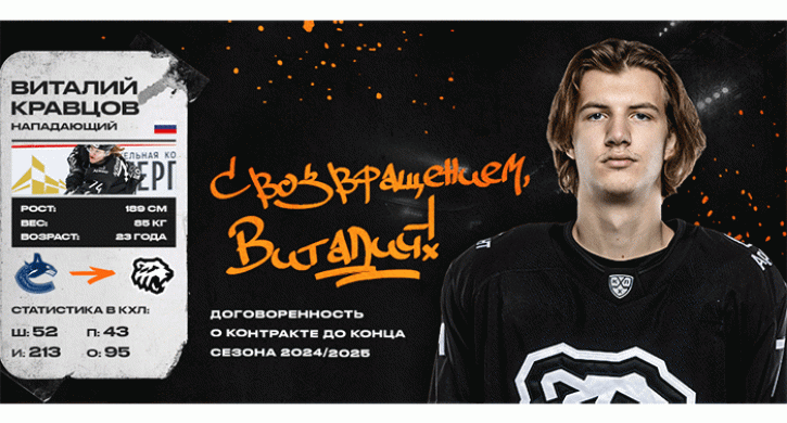 Форвард Виталий Кравцов возвращается в челябинский «Трактор»