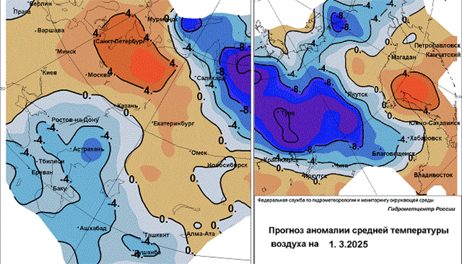 В субботу преимущественно без осадков, 1 марта ночью минус 13-18, в горах и низинах – до 23 градусов, днем от минус 3 до плюс 2, на юге – до 8 ниже нуля. Ветер юго-западный 2-7 м/с.