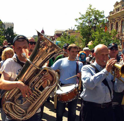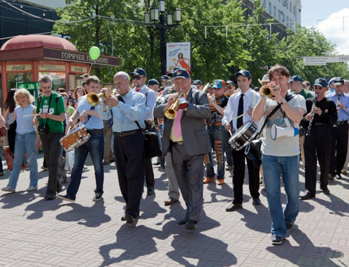 Традиционно после марша джазмены делятся на две группы – на открытых площадках у главпочтамта и оперного театра выступают соответственно экспериментаторы и классические биг-бэнды с практически академическим репертуаром.