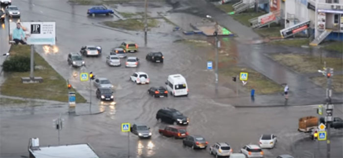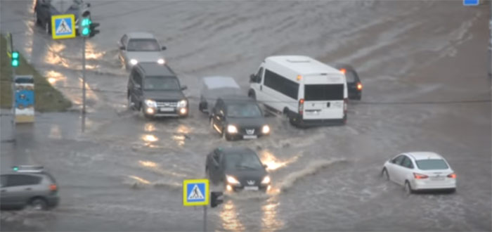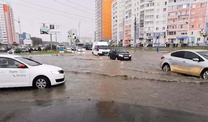 Ливень, прошедший в Челябинске вечером 29 июля, затопил улицы города – автомобилистам и пешеходам пришлось пробираться через реки дождевой воды, передает корреспондент Агентства новостей «Доступ».