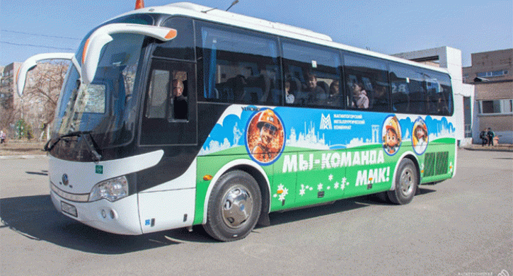 От школы до места проведения экскурсии и обратно в школу воспитанников летних городских лагерей доставляли комфортные и красочно оформленные брендированные автобусы, предоставленные автотранспортным управлением Магнитогорского металлургического комбината.