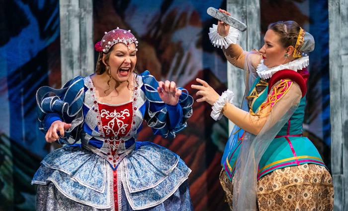 В общем, балаган – жанр, в котором масса прелестей (возможны любые нестыковки сюжета, можно подурачиться, а что вы хотите – балаган!), но и свои же законы. Сюжет сложноват, лишен сарказма (?!) и даже куртуазен. Виртуозные лацци и прекрасно исполненные песни ублажают публику, но замутняют фабулу – в приступах всеобщего веселья найти порванные нити сюжета бывает проблематично…