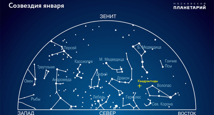 «Пик новогоднего звездопада Квадрантиды наблюдаем в ночь с 3 на 4 января и до рассвета над восточным горизонтом. Ожидается до 120 метеоров в час», – сообщает Московский планетарий.