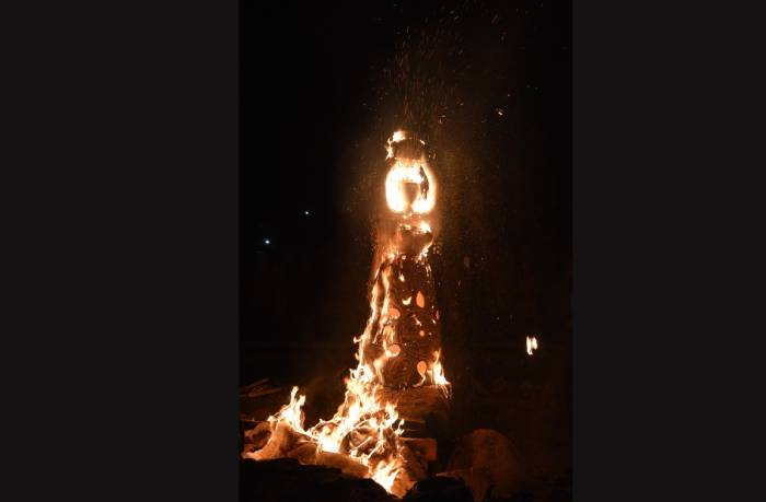 Вечером, когда стемнеет, фигура предстанет перед зрителями, испускающая языки пламени. Финальный этап будет сопровождаться выступлением мастера горлового пения и игры на хомусе (якутском варгане) Олены Уутай.