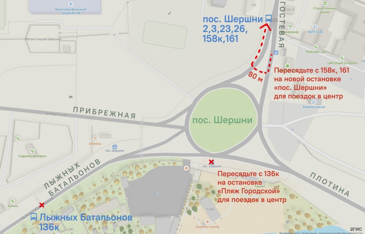 При поездках на автобусе № 158К пересадка в сторону центра на автобусы № 2, 3, 23 и 26 будет осуществляться на новой остановке «Шершни».