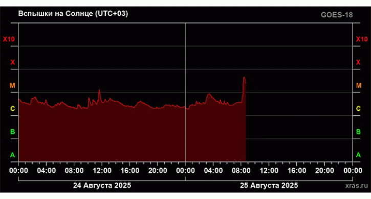 На Солнце 25 августа зарегистрирована самая крупная с 20 июня этого года вспышка, передает корреспондент Агентства новостей «Доступ».