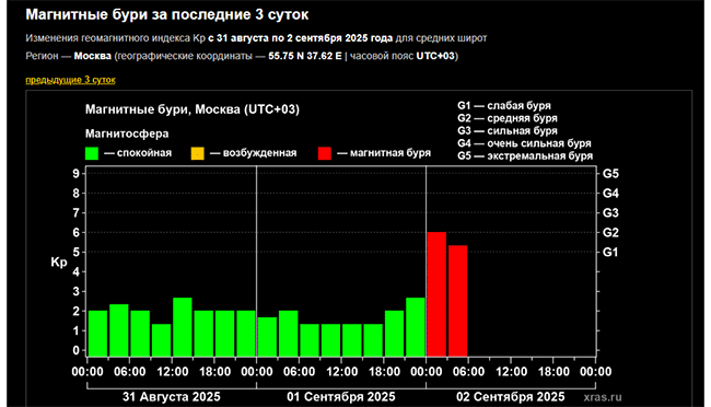 На Земле ночью 2 сентября начались планетарные магнитные бури
