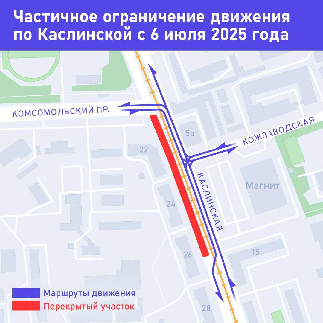 Двустороннее движение для автомобилей организуют по другой стороне улицы Каслинская.