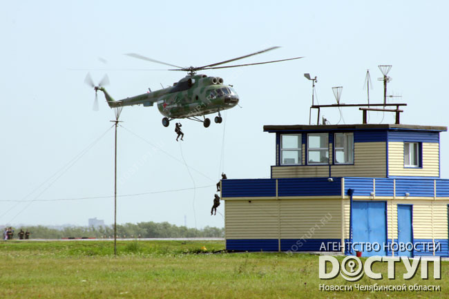 Зрители увидели шоу парашютистов и авиационную подготовку отряда ФСБ, а также оценили работу отряда специального назначения «Урал» ГУФСИН во время «освобождения самолета от террористов».