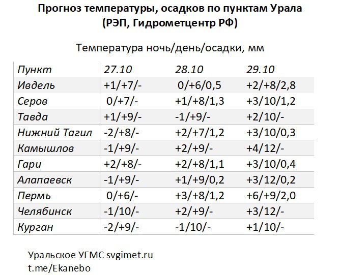 Синоптики говорят, что 27-29 октября антициклон будет двигаться на восток по северу Казахстана. Атмосферное давление будет понижаться, что облегчит атмосферным фронтам движение с юга Европейской территории России вдоль Волги и Камы на север Свердловской области.