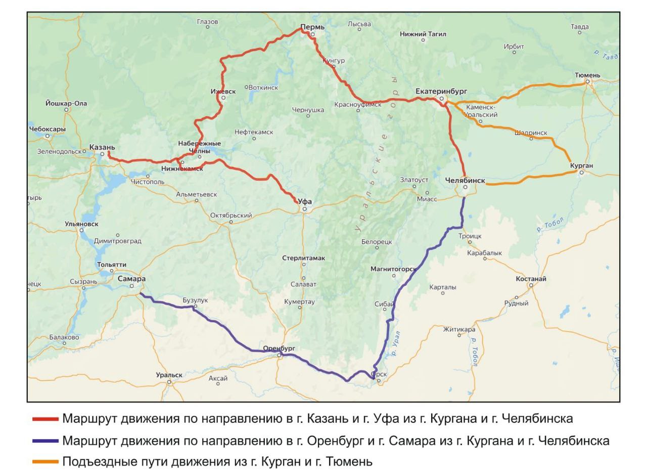 Уехать из Челябинска в Казань и Уфу можно через Екатеринбург, Пермь, Ижевск и Набережные Челны. Добираться до Самары сейчас рекомендуют через Магнитогорск, Орск, Оренбург и Бузулук.
