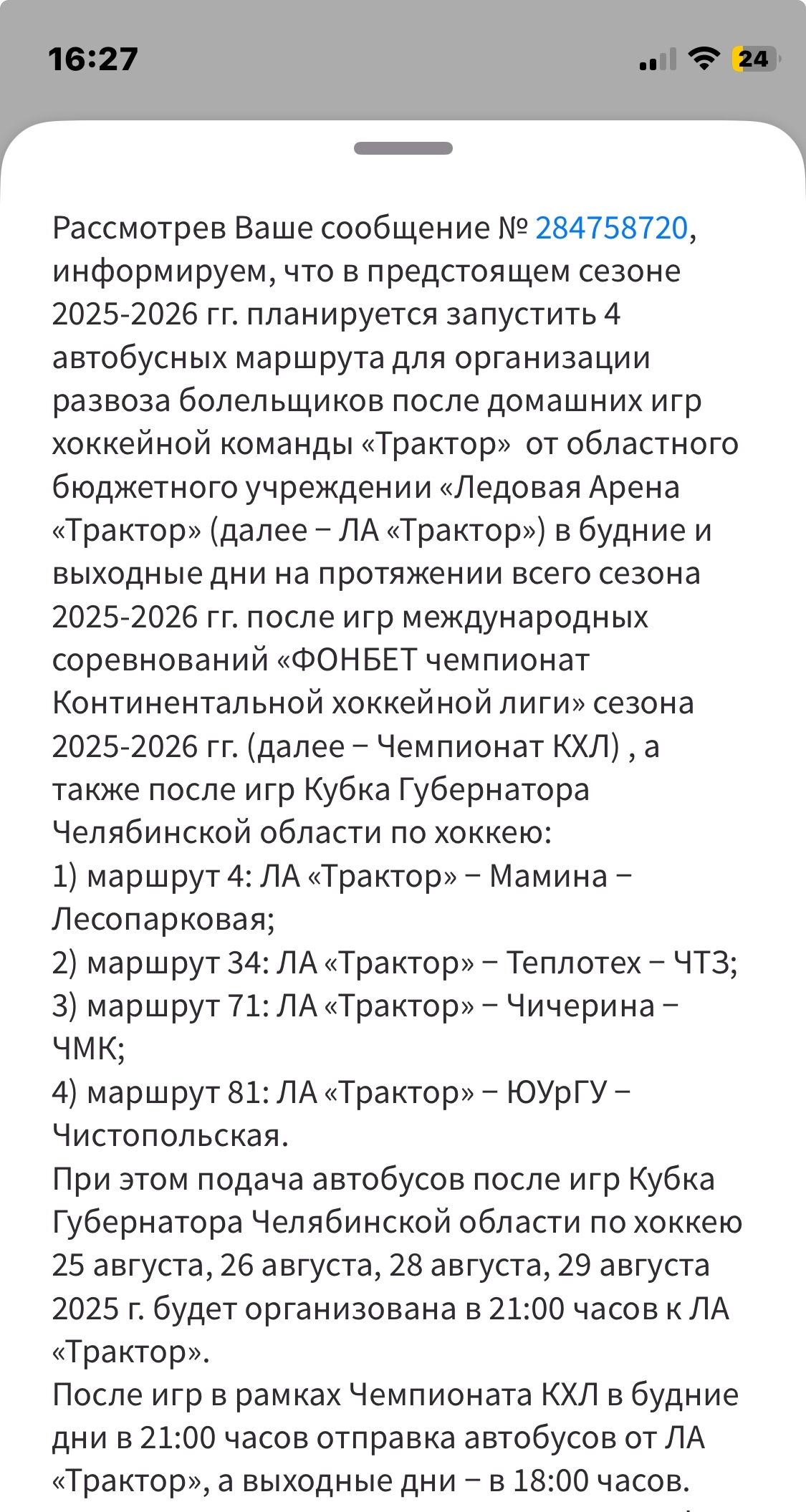 После домашних игр челябинского «Трактора» болельщиков развезут спецавтобусы, передает корреспондент Агентства новостей «Доступ».