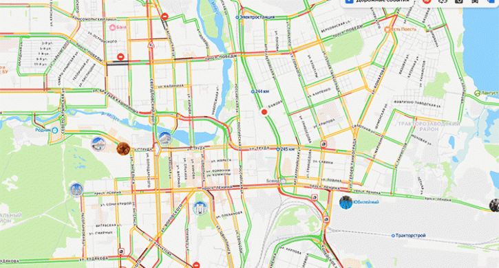Затруднения движения наблюдаются на проспекте Победы, улице Братьев Кашириных и многих других.