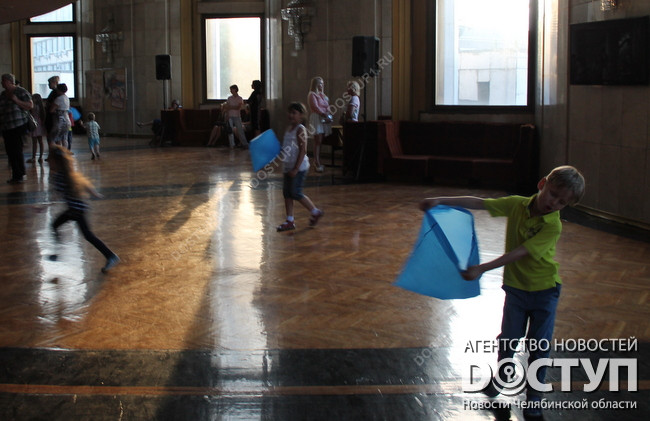 В антракте самым маленьким зрителям спектакля выдали по пакету, чтобы малыши, парадируя актеров, ловили ветер в фойе театра