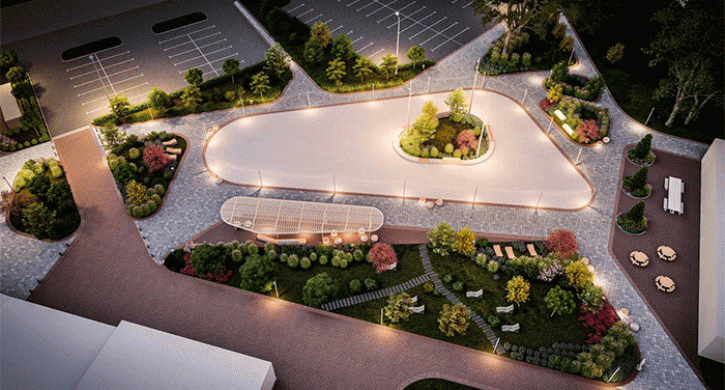 По ее словам, с помощью геопластики будет создан оригинальный рельеф местности, искусственные холмы. Также в проекте – площадка для размещения арт-объектов. «Здесь появится много зелени, газонов, широкие мощеные дорожки, а также площадка с роллердромом, на которой зимой будет заливаться каток», – уточнила мэр.