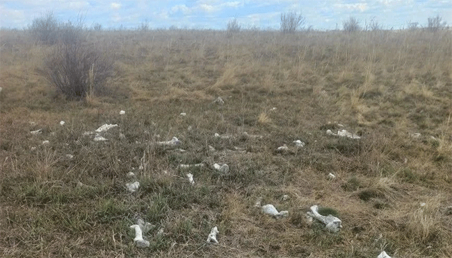 «Скотомогильник представляет собой две ямы прямоугольной формы, стены которых укреплены бетонными плитами, при этом перекрытие ям отсутствует, а территория не огорожена. Открыт доступ бродячим домашним и диким животным, которые растаскивают захороненные останки. Открытое складирование и хранение биологических отходов без проведения обязательной процедуры обеззараживания является нарушением ветеринарных правил», – говорится в комментарии.